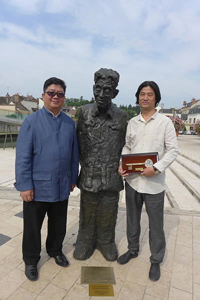 近日,著名雕塑艺术家李小超户外青铜雕塑作品《教书先生》走进法国蒙塔尔纪市。2014年7月20日上午,在法国蒙塔尔纪市市政厅广场,中国公共关系协会常务副会长兼秘书长王大平先生、蒙塔尔纪市市长杜尔(Monsieur Jean-Pierre DOOR)先生、作者李小超先生及中国驻法使馆、华侨华人代表出席了《教书先生》收藏仪式。