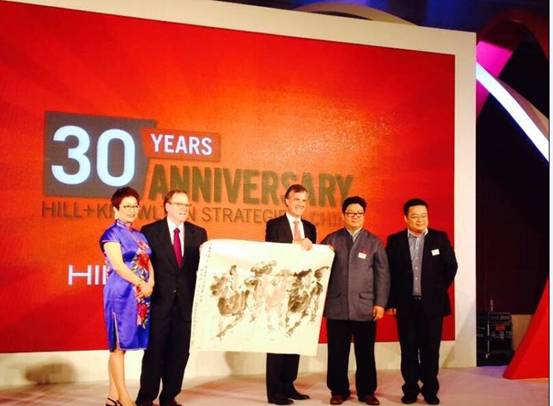中国公共关系协会常务副会长兼秘书长王大平代表协会向伟达公关赠送了中国著名丝路大写意画家、北京大学历史文化资源研究所研究员、书画研究室主任张录成先生的作品《万马奔腾》。王大平秘书长在贺辞中说:“今年是马年,马代表吉祥、成功,《万马奔腾》祝福伟达公关事业一马当先、马到功成。”伟达公关全球董事长兼首席执行官杰克·马丁(Jack Martin),全球副主席兼亚太区主席李伟恒(Viv Lines),亚太区执行副总裁兼中国董事长叶钰接受贺礼。