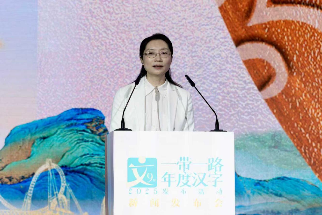 ▲重庆市永川区委常委、宣传部部长张小梅在2025“一带一路”年度汉字发布活动新闻发布会致辞。(苗露/摄)